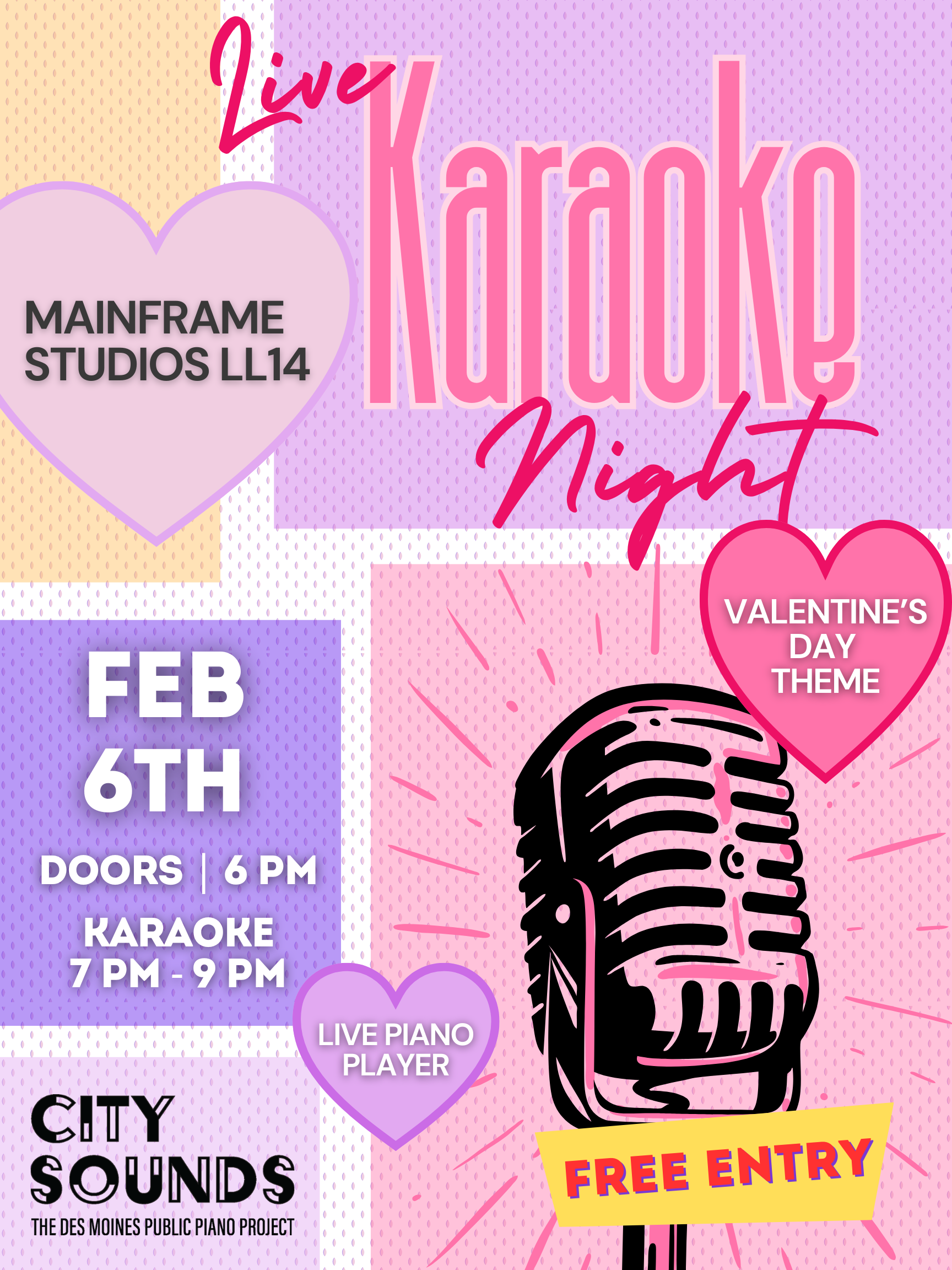 Come sing your favorite love songs with us on Friday, February 6th. Choose from our list of songs and perform with a live piano accompanist.
